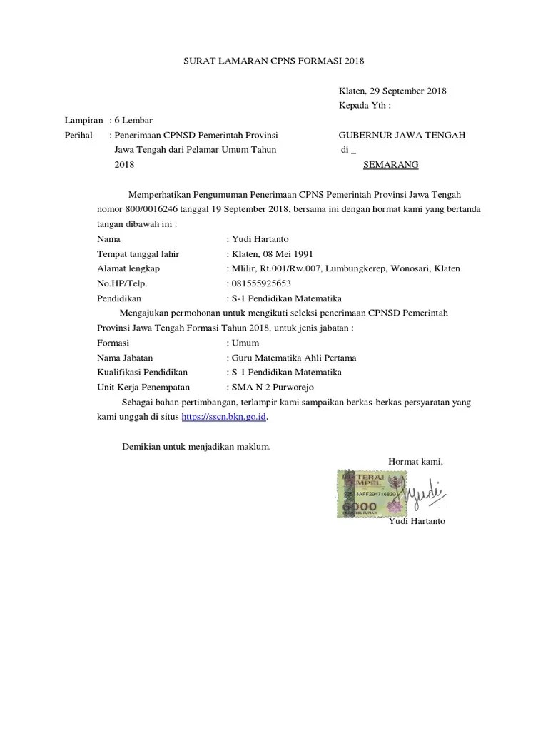 Salah satunya adalah surat pernyataan atau surat lamaran yang bermeterai. Pengumuman hasil seleksi administrasi formasi lowongan cpns kab garut. Semoga contoh surat lamaran cpns berikut dapat bermanfaat bagi anda. Foto yang tak sesuai hingga lupa memasang materai dalam surat lamaran. Bkd jatim lewat twitter resminya mengungkapkan adanya pelamar .